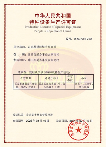山東桂冠機(jī)械有限公司成立于2008年,注冊資金1600萬元,現(xiàn)有員工200多人,中高級技術(shù)管理人員45人,占地面積27000多平方米,生產(chǎn)車間面積12000多平方米。公司具備壓力容器產(chǎn)品的設(shè)計(jì)、制造(證書編號為:TS2237703-2025)、壓力管道安裝(證書編號為TS3837607-2025)全套壓力容器資質(zhì);通過國家ISO9001質(zhì)量管理體系認(rèn)證、美國ASME認(rèn)證、歐盟CE認(rèn)證;擁有建筑安裝機(jī)電工程專業(yè)承包叁級資質(zhì)、建筑工程施工總承包叁級資質(zhì)及對外貿(mào)易經(jīng)營出口權(quán)…
